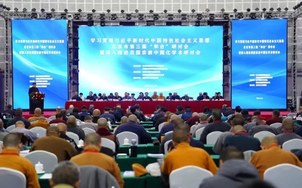 为深入学习贯彻党的二十大精神和习近平总书记关于宗教工作的重要论述,坚持我国宗教中国化方向,加强理论阐释和实践探索,以实际行动推进宗教中国化工作走深走实,12月18日,学习贯彻习近平新时代中国特色社会主义思想——北京市第三届“和合”研讨会暨深入推进我国宗教中国化学术研讨会在京召开。研讨会由北京市民族宗教事务委员会、中国社会科学院世界宗教研究所联合主办,北京市宗教文化研究会、海淀区民宗办承办,北京市五大宗教团体协办。中央统战部十二局局长吴国生,市委统战部副部长、市民族宗教委主任王都伟,市人大民宗侨外委主任委员、市人大常委会民宗侨外办主任潘临珠,市政协民宗委主任、市宗教文化研究会会长钟百利,市委统战