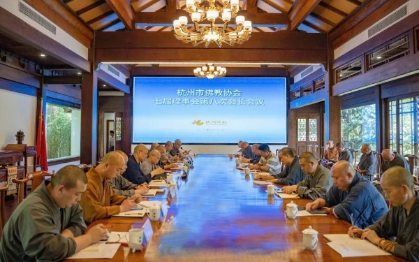 2023年8月21日上午,杭州市佛教协会召开七届理事会第八次会长会议。市佛协七届理事会领导班子成员参加会议,常务副秘书长、副秘书长、市属寺院负责人列席会议。会议由月真会长主持。▲杭州市佛教协会会长月真法师主持会议会议传达学习了《宗教活动场所管理办法》。会议指出,深入学习贯彻《宗教活动场所管理办法》是全面贯彻落实习近平法治思想和关于宗教工作的重要论述以及全国宗教会议精神的重要举措,对维护宗教活动场所和信教公民的合法权益,提升宗教活动场所管理的制度化、规范化水平,具有重要意义。会议强调,要将《宗教活动场所管理办法》的学习纳入各场所日常学习内容之中,要结合工作实际制定各场所学习贯彻工作方案,组织僧众