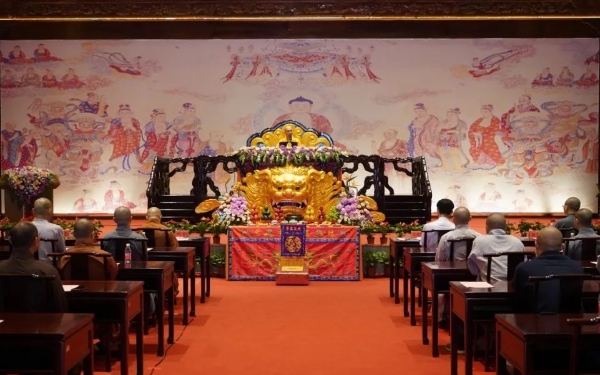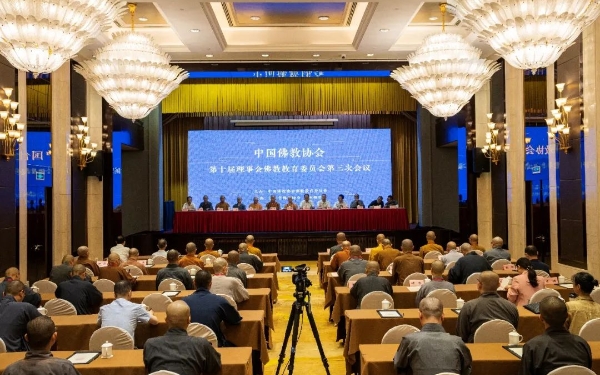 2023年6月20日,中国佛教协会第十届理事会佛教教育委员会第三次会议在杭州召开。会议主题是:深入学习贯彻党的二十大精神,加强佛教院校规范化建设,推动佛教教育高质量发展。会议学习了党的二十大精神和习近平总书记关于宗教工作的重要论述,讨论了事关佛教人才培养工作的重要问题,审定了全国汉传佛教院校教师资格认定工作小组提交的关于全国汉传佛教院校资格认定的意见、全国汉传佛教院校学位授予工作小组提交的关于中国佛学院授予硕士学位的意见。▲奏唱国歌中央统战部有关部门负责人、浙江省民族宗教事务委员会副主任钟新章、杭州市民族宗教事务局局长邵根松,中国佛教协会副会长心澄法师、明海法师,第十届理事会佛教教育委员会委员