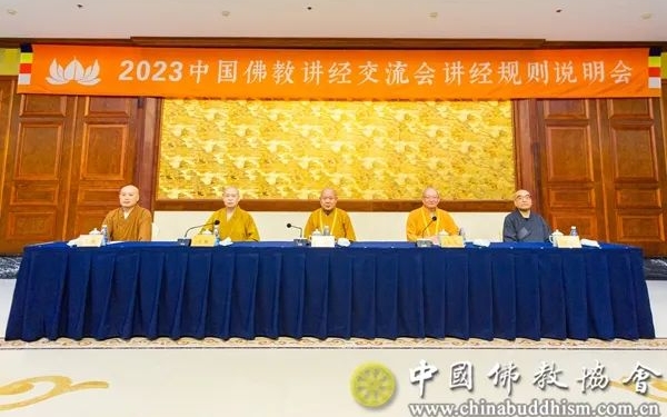2023年7月3日下午,2023中国佛教讲经交流会规则说明会在江苏无锡举行。中国佛教协会驻会副秘书长宏度法师,中国佛教协会副秘书长、江苏省佛教协会会长秋爽法师,江苏省佛教协会副会长、无锡祥符禅寺住持普俊法师,中国佛教协会有关部室负责人以及参加本次中国佛教讲经交流会的29位讲经法师共同出席了讲经规则说明会。会议由中国佛教协会教务部主任长顺法师主持。宏度法师向来自全国25个省、自治区、直辖市和中国佛学院的的讲经法师介绍了此次讲经交流会的有关事项,就宣讲题目、所依经典、讲经要求等各方面规则向讲经法师作了详细说明。2023中国佛教讲经交流会将于7月4日至7日在江苏无锡举行。本次中国佛教讲经交流会以习近