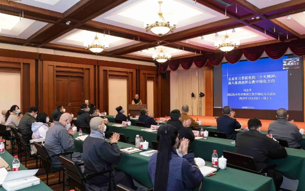 为深入学习新时代中国特色社会主义宗教理论,全面贯彻党的二十大精神,进一步推进宗教中国化的杭州实践,近日,杭州市宗教研究会特邀《中国宗教》杂志社社长刘金光线上作题为《认真学习贯彻党的二十大精神 深入推进我国宗教中国化》的专题讲座。刘金光通过系统分析坚持我国宗教中国化方向的历史逻辑、重大意义和政策举措,深刻阐述了习近平总书记在全国宗教工作会议上提出的“必须坚持我国宗教中国化方向”的要求,以深厚的理论和广阔的视野,进一步提升了民宗干部、宗教界人士等对宗教中国化的认知,为我市打造宗教中国化和宗教事务治理现代化城市之窗提供精准指导。通过聆听讲座,大家表示更加深刻地领悟到以习近平同志为核心的党中央对坚持我
