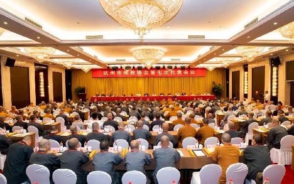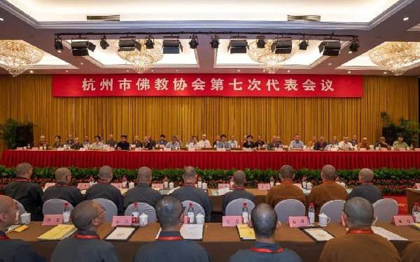 6月26日上午,杭州市佛教协会第七次代表会议在杭隆重开幕,全市佛教界258名代表(含特邀代表)参加。浙江省委统战部副部长、省民宗委主任鲍秀英,省委统战部民宗处处长毛秋红,省民宗委宗教一处处长楼剑涛;杭州市政府副市长刘嫔珺,市政府副秘书长王仁,市委统战部副部长、市民宗局局长邵根松,市民宗局党组副书记、副局长唐明壮,市民宗局党组成员、二级巡视员周晓明,市委统战部民宗处处长黄唯翊,市民政局社会组织管理局三级调研员曾欣华,市民宗局宗教处副处长舒修明;浙江省佛教协会副会长可祥法师等领导出席会议。市道教协会会长董中基、市伊斯兰教协会会长冶曼苏、市天主教爱国会副主任骆玛利、市基督教三自爱国运动委员会主席孙彰