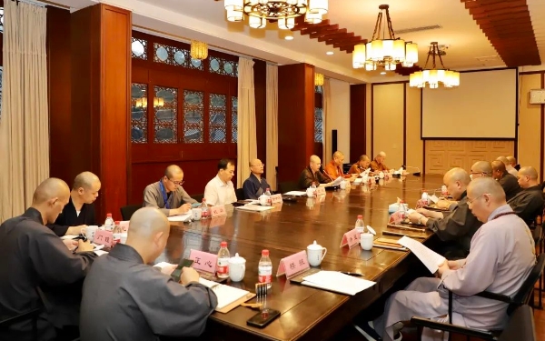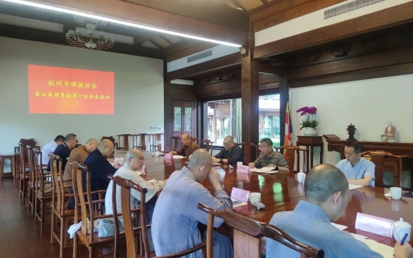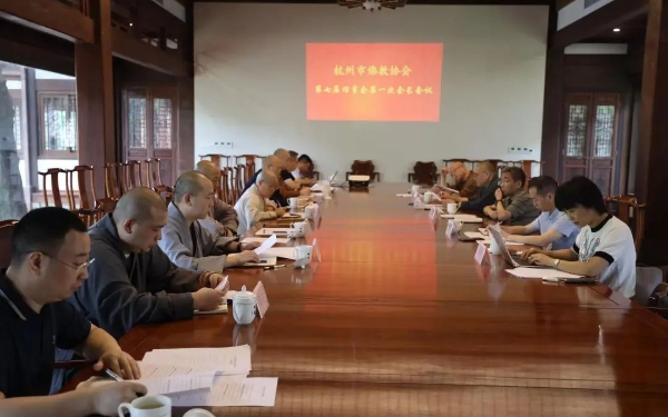 2022年7月18日,杭州市佛教协会召开七届一次会长会议,学习贯彻省第十五次党代会精神,全面部署崇俭戒奢教育活动。市民宗局党组副书记、副局长唐明壮等应邀参加会议。会议深入学习了习近平总书记关于厉行节约、反对浪费的重要指示精神以及省第十五次党代会精神,宣读了全国性宗教团体联合发出的《关于崇俭戒奢的共同倡议》和《浙江省宗教界关于崇俭戒奢的共同倡议》。会议部署了全市佛教界落实全面从严治教、开展崇俭戒奢教育活动,倡导崇俭戒奢,注重教风建设,倡导生态理念,致力和谐共生,倡导纯信正行,强调持规守戒,倡导简朴节俭,确保安全有序,促进我市佛教健康传承。会长月真法师及协会各副会长、秘书长围绕“崇俭戒奢”作表态发