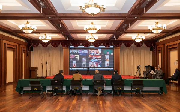 2021年12月10日,浙江省佛教协会七届理事会第十九次会长会议以线上线下相结合的形式在杭州召开。省委统战部民宗处处长毛秋红,省民宗委宗教一处处长楼剑涛莅会指导。省佛协名誉会长道慈法师,会长怡藏法师,副会长光泉、惟航、允观、可祥、诚信、智明、信光、月真、达照、贤宗法师,秘书长金幸祥参加会议。会议由光泉法师在线下主持。▲名誉会长道慈法师、会长怡藏法师在线上参加会议会议对浙江省佛教协会第八次代表会议代表资格审查报告进行了审议,并讨论了七届理事会工作报告、财务审查报告和章程修改说明,酝酿了八届理事会理事、常务理事等议题。▲毛秋红处长、楼剑涛处长莅会指导副会长光泉法师、秘书长金幸祥在线下参加会议会议要