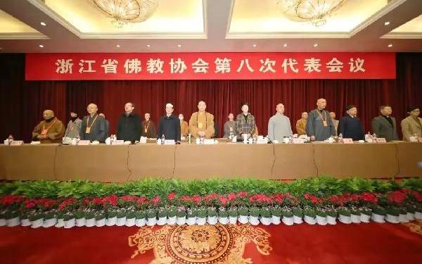 2022年2月28日上午,浙江省佛教协会第八次代表会议在杭州隆重开幕。来自全省佛教界200余名代表(含特邀代表)及列席人员参加会议。浙江省委统战部副部长、省民宗委主任鲍秀英出席会议并讲话,中国佛教协会副会长宗性法师到会祝贺并致辞,浙江省道教协会会长董中基、浙江省伊斯兰教协会副会长魏志明、浙江省天主教爱国会主任方法全神父、浙江省基督教三自爱国运动委员会主席潘兴旺牧师到会祝贺。会议在雄壮的国歌声中拉开序幕,省佛教协会七届理事会副会长允观法师致开幕辞。七届理事会会长怡藏法师作了题为《高举爱国爱教旗帜,坚持佛教中国化方向,稳步推进浙江佛教事业健康发展》的七届理事会工作报告。开幕式由省佛协七届理事会副会