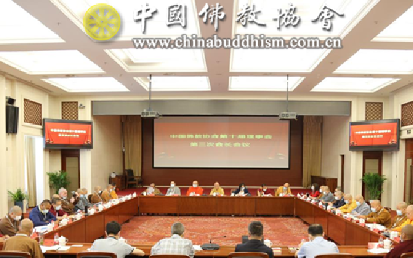 2021年6月1日下午,中国佛教协会第十届理事会第三次会长会议在京举行。会议通报了中国佛教协会贯彻落实《关于开展“爱党爱国爱社会主义”主题教育的共同倡议》相关工作情况,研究讨论《佛教教职人员行为守则(草案)》《关于中国佛教协会第十届理事会领导班子成员发挥示范带头作用的意见(草案)》等文件。中国佛教协会会长演觉法师主持会议并讲话,中央统战部有关部门负责人莅会指导。演觉会长在讲话中指出,在庆祝中国共产党成立100周年的重要时刻,中国佛教协会要积极贯彻落实中共中央办公厅印发的《关于在全社会开展党史、新中国史、改革开放史、社会主义发展史宣传教育的通知》,以及全国性宗教团体联合发出的《关于开展“爱党爱国