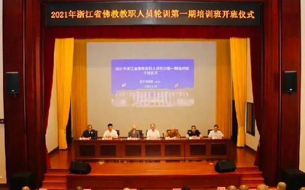 6月21日上午,浙江省佛教教职人员轮训第一期培训班在浙江佛学院(总部)开班。浙江省民宗委副主任钟新章,宁波市民宗局党组成员、二级巡视员常晓波,奉化区委常委、统战部部长黄峻,浙江省佛教协会会长、浙江佛学院院长怡藏法师,浙江省佛教协会副会长、教育培训专委会主任光泉法师,浙江省佛教协会秘书长金幸祥出席开班式。▲奏唱国歌浙江省各地市寺院主要负责人约50人参加此次培训班。开班式由浙江佛学院(总部)常务副院长持定法师主持。▲浙江省佛教协会副会长光泉法师发言光泉法师表示,浙江省作为“重要窗口”和“共同富裕示范区”,理应为中国佛教人才培养肩负起时代职责和历史使命,做出更具开拓性的努力,其中大力培养能够适应新时
