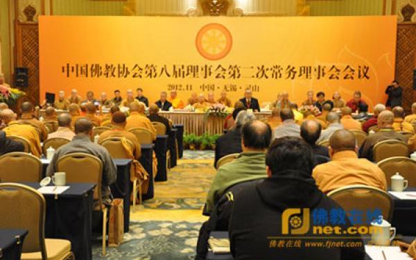 2012年11月26日上午11时,中国佛教协会第八届理事会第二次常务理事会在无锡灵山梵宫如是堂圆满举行第三次全体会议暨闭幕会议。出席会议并 在主席台就座的领导有,中国佛教协会传印会长,中国佛教协会各位副会长和秘书长,国家宗教事务局一司刘威司长、裴飙副司长,国家宗教事务局外事司肖虹副司 长等。会议由学诚副会长主持,刀述仁副会长作会议总结。教务部宏度主任宣读中国佛教协会第八届理事会第二次常务理事会会议决议,与会常务理事审议并原则通 过决议。