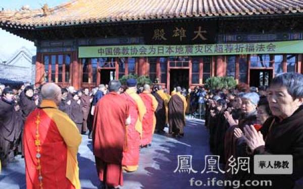 2011年3月16日上午,中国佛教协会在北京广济寺隆重举行为日本地震灾区超荐祈福法会。中国佛教协会会长传印长老、副会长学诚法师、秘书长王健先生率中国佛教协会全体僧俗工作人员与北京法源寺、广济寺、灵光寺、广化寺、雍和宫、北京居士林的首都佛教四众弟子1000余人,共同为日本特大地震及次生灾害中的遇难者祈祷回向。在法会仪式上,中国佛教界23所名寺为日本地震灾区民众募集善款一百万元。