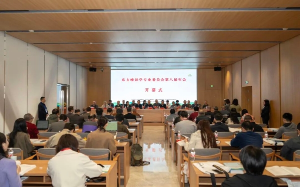11月2日,东方唯识学专业委员会第八届年会在杭州国际佛教文化交流中心召开。本届唯识学年会由杭州市佛教协会、杭州市宗教研究会、浙江大学哲学学院、东方唯识学专业委员会主办,杭州佛学院、杭州国际佛教文化交流中心承办。来自北京大学、中国社会科学院大学、中国人民大学、德国慕尼黑大学、香港中文大学、科伦坡大学等著名高校、研究机构,及中国佛学院、浙江佛学院、杭州佛学院等80余名专家学者与法师参加了本次东方唯识学年会。▲开幕式由杭州佛学院副院长慧仁法师主持杭州市民宗局一级巡视员、市宗教研究会会长邵根松,杭州市民宗局副局长陶胜,浙江省民宗委宗教三处处长郭家明,浙江省民宗委宗教三处三级调研员魏微,浙江省佛教协会秘