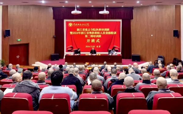 12月2日上午,浙江省重点寺院执事培训班暨2024年浙江省佛教教职人员省级轮训第二期培训班,在中央社会主义学院(北京)开班。中央社院培训部副主任刘静,浙江省佛教协会会长光泉法师出席开班式,省内94位重点寺院执事参加培训,开班式由浙江省佛教协会秘书长金幸祥主持。刘静在致辞中提出四点希望:一是坚持全面系统学习。认真学习习近平新时代中国特色社会主义思想、党的二十大及二十届历次全会精神、中央统战工作会议精神以及全国宗教会议精神。二是坚持联系实际学习。坚持我国佛教中国化方向,以社会主义核心价值观为引领,引导教职人员和信教群众增进“五个认同”。三是坚持及时跟进学习。争取做到既能正确阐释教义教规,又能讲好党