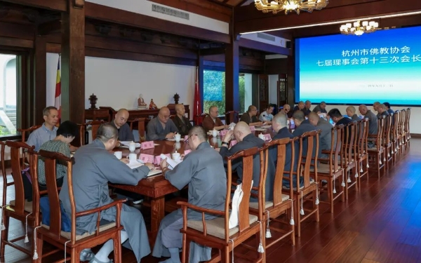 9月11日上午,杭州市佛教协会七届理事会第十三次会长会议在市佛协会本部召开,市佛协七届理事会领导班子成员参加会议,常务副秘书长、副秘书长列席会议,市民宗局宗教处处长舒修明莅会指导。会议由月真会长主持。▲月真会长主持会议▲常务副会长戒兴法师传达学习相关会议精神会议传达学习了党的二十届三中全会精神及省委十五届五次全会精神。会议强调,全市佛教界要深化思想认识,把学习好、传达好、贯彻好、落实好系列会议精神作为当前及今后一个时期的重要政治任务落细落实,采取多种方式、多样形式原原本本学、深入细致学,积极向信教群众传达好党的二十届三中全会精神和省委十五届五次全会精神,切实把思想和行动统一到党的二十届三中全会