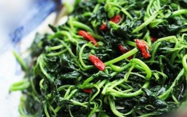 【主材】:苋菜、枸杞。【制作】:1、苋菜剪去根茎洗净,沥水。2、枸杞洗净后待用。3、炒锅入橄榄油,油锅微热时倒入苋菜翻炒。4、加盐和枸杞转小火,稍煮一会儿起锅装盘。