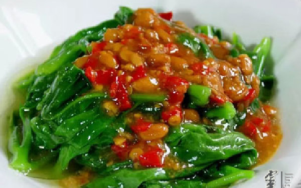【原料】:木耳菜、剁椒、黄豆酱 【制作】: 1、木耳菜清洗干净沥水待用。 2、净锅内倒入水,水开之后加少许山茶油、盐、蘑菇精,放入木耳菜焯熟,迅速倒出沥干水装盘。 3、另起锅放少许山茶油,放剁椒煸香,放黄豆酱煸香,加少许水,略微炒匀,勾一点点薄芡淋在木耳菜之上即可。 【烹饪心得】 由于木耳菜中含有较高草酸,用沸水焯熟,去掉绝大部分草酸,保证钙的吸收率。烫熟一定要时间短,时间长了易出黏液。 【特点】 木耳菜清香爽口,沐浴着阳光,格外嫩绿油亮,真是 可爱。加上剁椒、黄豆酱,色彩上形成反差,视觉上更加丰富。 【创意】