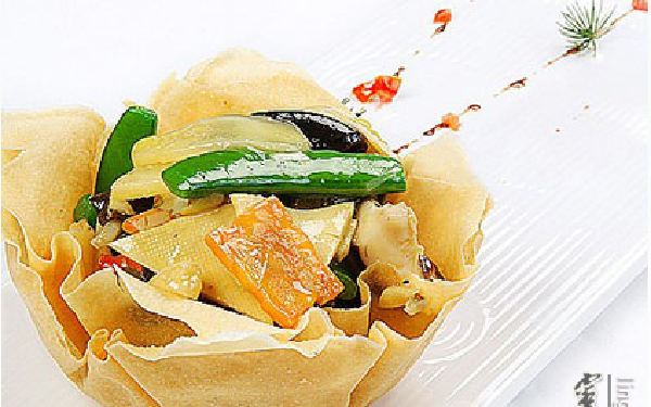 【原料】:冬笋、厚百叶(干豆腐)、新鲜香菇、酱瓜、仔姜(嫩姜)、黑木耳、蜜豆、胡萝卜。 【制作】: 1. 冬笋用手剥去外壳,冬笋肉先入热水锅焯水至熟,。倒出,放入冷水中浸泡一会儿,沥干水分。切成片待用。 2. 厚百叶洗干净,切三角块待用。 3. 大开仔姜包装袋,切斜刀片待用。 4. 大开酱瓜包装袋,切斜刀片待用。 5. 切除新鲜香菇根蒂,切四方块待用。 6. 黑木耳泡水涨发,洗干净待用。 7. 胡萝卜洗净,切花刀片待用。 8. 蜜豆抽去二边筋丝,用刀切除二头,洗干净待用。 9. 起锅,锅中加水,待水沸时将厚百叶放入,约20秒捞出。 10. 原锅,锅中加盐、糖、少许油