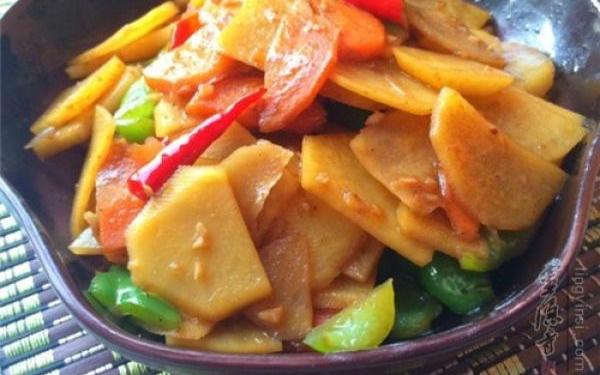 【主料】:土豆 3个、 胡萝卜 1、青椒 1个。【做法】:1. 土豆去皮切片。2. 青椒切块儿,胡萝卜切片。3. 姜切末,小米椒切段。4. 调碗料汁:白糖一勺、香醋一勺、生抽3勺、面酱一勺、盐适量、椒盐适量。5. 烧热底油,姜末、小米椒下锅爆香。6. 土豆片、胡萝卜片下锅翻炒。7. 料汁倒进锅里炒匀。8. 青椒下锅,稍稍加一点儿水翻炒,最后调入芝麻油出锅。