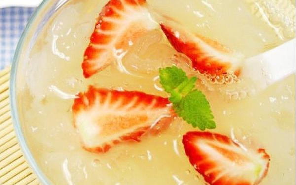 制作方法: 1、将干银耳用水泡3个小时以上,剪去老蒂,去除杂质,再撕成小朵。 2、锅中水烧开后,放入银耳、红枣大火烧开,转小火,炖3个小时以上。 3、放入冰糖、草莓即可。
