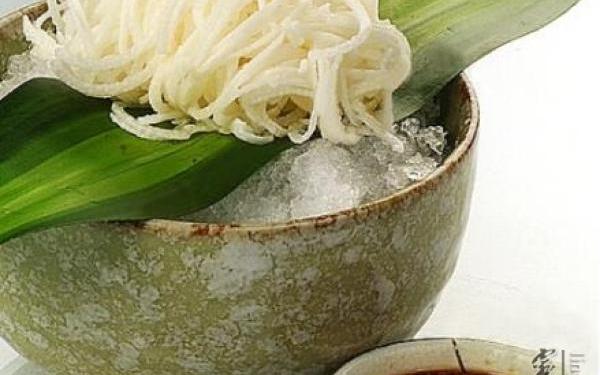 【主料】:山药 【调味料】:镇江香醋、姜末、生抽、糖 【制作】: 1. 山药清洗干净,刨皮,浸泡于白醋水约5分钟。 2. 取出,用摇丝刀,刨成细丝。 3. 取不锈钢码斗,放入镇江香醋、生抽、糖调成调味料,最后放入生姜末拌匀即可。 4. 用小冰块,捣碎,放入碗中。上面放一片巴西叶,最后把步骤(2)的山药细丝,放在巴西叶之上,用小米椒圈、荷兰芹点缀,跟一碟步骤(3)的调味料。 5. 吃时挟着山药丝,放入步骤(3)的调味料中浸一下,就可以吃了。 6. 还可以用日本青芥辣配日本酱油,沾着吃。