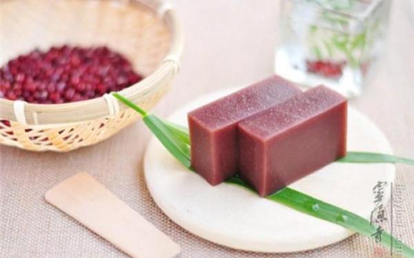【材料】(八人份):去壳的熟栗子 100克、红豆沙 400克、清水(栗子蓉用) 1-2小匙 、清水(溶解粉末琼脂用) 400毫升 、清水(溶解淀粉用) 25毫升、 土豆淀粉 4克【调味料】: 砂糖(熬栗子蓉用) 60克、砂糖(粉末琼脂用) 55克、 粉末琼脂 3克 、盐 少许【做法】:1.熟栗子筛成蓉,加1-2小匙的清水揉成团,放在煮锅中,倒入60克砂糖。2.大火烧开后转中小火继续煮约1分钟,糖慢慢融化,栗子蓉里开始出水,用铲子不停地搅拌,几分钟后会变得粘稠,关火,栗子蓉就做好了。3.粉末琼脂在400毫升清水中浸泡5分钟,倒在净锅中煮,沸腾后加入55克砂糖和一点点盐,转小火煮1分半后关火,备用