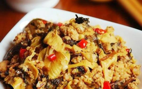 【材料】:豆皮3张、梅干菜20克、素肉100克、朝天椒3根、生姜10克【做法】:1、豆皮用水泡软;梅干菜用冷水泡软,抓洗一下,用筛网沥干水分。2、素肉洗净剁成蓉;豆皮切宽条;朝天椒洗净切碎;生姜。3、素肉末中加入姜碎、1茶匙生抽、1茶匙素蚝油、1茶匙水混合均匀。4、锅中不放油,放入梅干菜炒香,盛出备用。5、锅中放入适量油加热,放入腌制好的素肉馅炒散至变色,加入朝天椒碎炒香,再加入豆皮翻炒2分钟。6、然后放入梅干菜继续翻炒,最后倒入调味汁(酱油1大匙、砂糖1茶匙、水2大匙)炒至入味即可。
