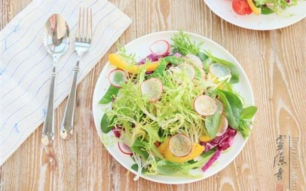 【主料】:苦菊1颗、樱桃萝卜2个、紫甘蓝100克、圣女果3个、鸡毛菜50克、甜椒(黄)1/2个、荷兰豆10个、花生仁(生)50克、白芝麻(熟)2勺【辅料】:食盐1勺、生抽2勺、醋2勺、白糖1勺、芝麻油1勺【做法】:1、花生米冷油下锅,慢慢会闻道花生米的香味,颜色会变重些,小火5到7分钟炸熟。2、炸熟后的花生米过滤掉油,放凉以后就会变得酥香。3、开水里加1勺盐,1勺植物油,倒入荷兰豆炒1分钟马上捞出。4、熟芝麻放在保鲜袋里,用擀面杖压碎,稍后撒在大拌菜里,可以增加香味。5、苦菊、鸡毛菜、紫甘蓝、荷兰豆、樱桃小萝卜、小番茄、黄色甜椒、清洗干净沥干水分,切好以后摆在一个大盆里(其他自己喜