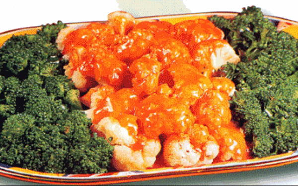主料:主、配料:西兰花250克,花菜250克。调料:精盐5克,味精5克,白糖10克,白醋5克,番 茄酱10克,姜末5克,淀粉20克,素油适量。