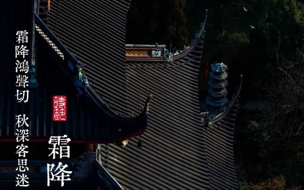 霜降,九月中,气肃而凝露结为霜矣——《月令七十二候集解》一年好景,倏忽秋凉,转眼又到霜降露气凝结后,气候由凉爽过渡至寒冷此时白天温度还比较高,晚间气温骤降散布的露水便会凝结成霜花因此只有在昼夜温差较大的晴天才会结霜从“露”到“霜”,秋色惊艳之感越发地强烈了寒意在身也挡不住深秋时节那斑斓的美停车坐爱枫林晚,霜叶红于二月花这是赞叹秋红绚烂的传世佳作秋深山有骨,霜降水无痕天地供吟思,烟霞入醉魂这是霜降时节深秋山色的绝美写照霜降三候一候豺祭兽豺狼虽然生性凶猛,亦怀敬畏报本之心此时它们将为过冬而捕获的兽物铺在地上仿佛在用祭天的方式感恩自然的馈赠二候草木黄落草木色由青转至枯黄,逐渐摇落凋零万物归尘,敛藏积