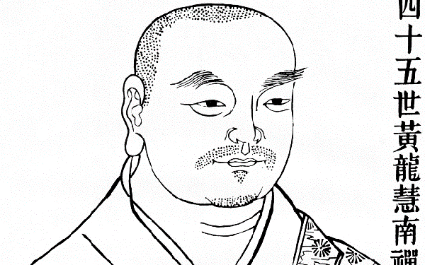 黄龙慧南禅师,乃石霜楚圆禅师之法嗣,俗姓章,信州玉山(今江西玉山县)人。慧南禅师十一岁从本州怀玉寺智銮禅师出家,十九岁落发受具足戒,后游方参学,先后师事于庐山归宗自宝禅师、栖贤澄諟禅师、泐潭怀澄禅师、福岩审承禅师。其中怀澄禅师对慧南禅师尤为器重,曾经令他分座接众,一时名震诸方。时慧南禅师与云峰文悦禅师相友善,文悦禅师是大愚守芝禅师之法嗣、汾阳善昭禅师之嫡孙。文悦禅师见到慧南禅师,每每感叹道:“南,有道之器也,惜未受本色钳锤耳!” 文悦禅师认为慧南禅师将来一定可以成为佛门的龙象,于是找机会提点他,要他去参临济宗第六代传人石霜楚圆禅师(又称慈明禅师)。路途中,慧南禅师遇到由石霜山来的僧人,因为不能