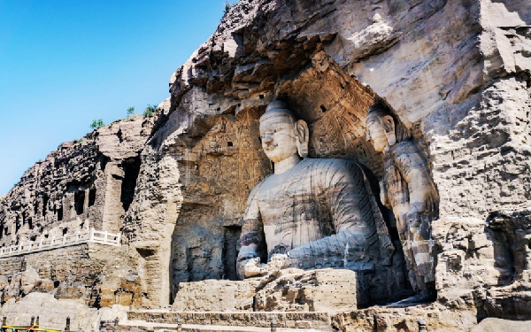 北朝在中国佛教文物方面,留下不少宏伟的遗迹,特别是石窟。如北魏开凿的有云岗、龙门等石窟。昙曜于兴安二年(453)请文成帝在平城西武州山开凿石窟五所,建立佛寺,称为灵岩。石窟大的高二十余丈,每窟各镌建佛像一尊,大的高七十尺,次为六十尺,建制奇伟,雕饰工致。后来献文帝、孝文帝更相继开凿许多石窟。其次,宣武帝于景明初(500),在洛阳城南伊阙龙门山的断崖开凿石窟。这个石窟原来是孝文帝太和年中(477—499)民间创始开凿,宣武帝命大长秋卿白整,仿照云岗石窟样式,为孝文帝及文昭皇太后营造石窟二所。熙平年中(516—518),孝明帝也为宣武帝营造石窟一所。诸窟的开凿历时二十三年,人工八十万二千三百六十六