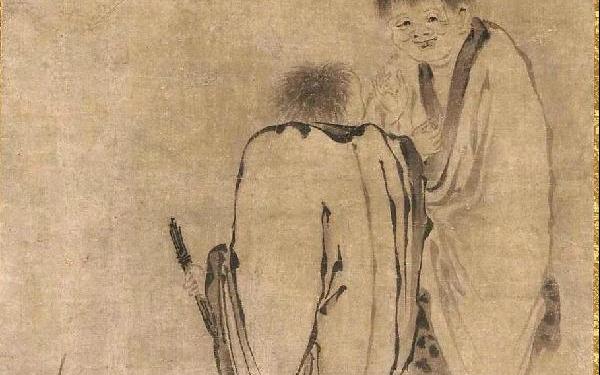 寒山与拾得两位高僧,皆为唐朝贞观年间人,同住在天台山国清寺,师事于丰干禅师。寒山,一说寒山子,好吟诗唱偈,语言通俗诙谐,后人辑为《寒山子诗集》,存诗300余首,其诗多表现山林隐逸之趣和佛教出世思想,对世态亦有所讥讽。拾得,本为孤儿,天台国清寺僧人丰干拾而养之,故名“拾得”。与寒山为友,亦能诗,诗附《寒山子诗集》后,二人诗风相近。寒山和拾得二人佛法高妙,诗才横溢,踪迹怪异,相传他们分别是文殊菩萨、普贤菩萨的示现。寒山与拾得是好朋友,两个人经常一起出游、吟诗作对,但是荒诞不经的行为,经常遭人讥讽追打。寒山问拾得曰:“世间有人谤我、欺我、辱我、笑我、轻我、贱我、恶我、骗我,如何处置乎?”拾得曰:“只