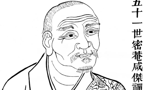 击石火里穿辽天鼻孔妙转机前打凤罗龙正法眼瞎驴边灭却破沙盆扶临济正宗门庭峭峻 孰敢当锋铁壁银山一线通——松源崇岳禅师赞密庵先师密庵咸杰禅师,应庵昙华禅师之法嗣,俗姓郑,郑州人。禅师母亲虔诚信仰佛教,有身孕时,尝梦见庐山一老僧入其房舍,后来生下咸杰禅师。师自幼颖悟不凡,气宇深沉,秉性高洁,志向超群,厌恶世间尘染,一心寻求出世间法。禅师侍亲以孝,闻于乡里,而双亲亦鼓励其修行志向。南宋绍兴四年(1134),咸杰禅师十七岁,于福清敛石山太平禅寺,在蕴公和尚座下薙度出家,不久受具足戒成为比丘僧。接着离开家乡外出参学,不惮游行,遍访诸方尊宿,虚心请益。约当三十岁时,咸杰禅师前往浙江衢州桐山明果禅院拜谒应庵昙