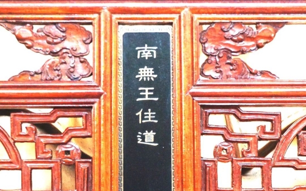 // 抱经空冢 悲泪何切普贤摩顶 默然为说禀观北齐 法华顿彻展拓义门 永迪来哲 // 慧思大师(515—577),俗姓李,后魏南豫州汝阳郡武津县(今河南上蔡县)人。十五岁出家,二十岁受具足戒,严守戒律,平时不常和人来往,每天读诵《法华》等经,数年之间便满千遍。又因阅读《妙胜定经》,开始修习禅观,后外出参访寻问禅法,常于林野间经行修禅。慧思大师往投当时著名的慧文禅师,从受禅法,白天随众僧事,夜间专心修禅。在第二个夏天到来时,慧思大师下定了决心:不能悟道,自己就坐死于此。他把自己的念头紧系于前,寂然入定。在开始的三个七天内,慧思大师看到自己有生以来的善恶业相,叹息不已,用功更加勤奋。不久