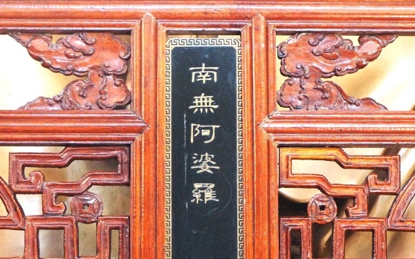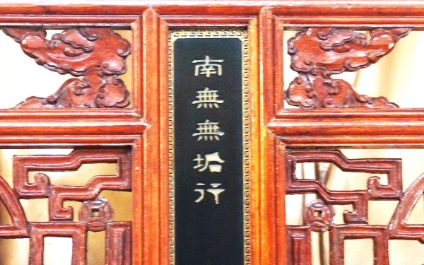 // 抱经空冢 悲泪何切普贤摩顶 默然为说禀观北齐 法华顿彻展拓义门 永迪来哲 // 慧思大师(515—577),俗姓李,后魏南豫州汝阳郡武津县(今河南上蔡县)人。十五岁出家,二十岁受具足戒,严守戒律,平时不常和人来往,每天读诵《法华》等经,数年之间便满千遍。又因阅读《妙胜定经》,开始修习禅观,后外出参访寻问禅法,常于林野间经行修禅。慧思大师往投当时著名的慧文禅师,从受禅法,白天随众僧事,夜间专心修禅。在第二个夏天到来时,慧思大师下定了决心:不能悟道,自己就坐死于此。他把自己的念头紧系于前,寂然入定。在开始的三个七天内,慧思大师看到自己有生以来的善恶业相,叹息不已,用功更加勤奋。不久