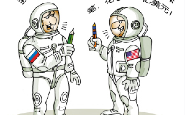 1961年,美国宇航局首次将宇航员送上太空,但他们很快接到报告:宇航员在失重状态下,用圆珠笔和钢笔根本写不出字来。于是,他们用了10年时间,花费120亿美元,终于发明了一种新型圆珠笔,这种笔适用于失重状态、身体倒立、水中、任何平面物体,甚至在摄氏零下300度也能书写流利。当美国人向俄罗斯人炫耀时,却发现俄罗斯人在太空中一直使用铅笔。 感悟:尽管有很多人怀疑这则故事的真实性,甚至有不少有心人找出各种证据来证伪。抛开故事的真伪不说,不能否认,大部分人在读完这个故事都有醍醐灌顶的感觉:原来那么复杂那么高科技的问题,可以用这么简单的办法来解决!当我习惯于用科学解决问题的时候,却丢失了我们原初的本
