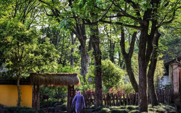 山水真如【宋】天衣义怀禅师蜀魄连宵叫,鵽鳭终夜啼。圆通门大启,何事隔云泥?云门宗以“山河大地”为“西来意”,以“青青翠竹、郁郁黄花”为“随色摩尼珠”,以“芭蕉叶上三更雨”为“云门一曲”,山河大地、翠竹黄花、蕉叶雨吟都是自性的显现,山山水水悉是真如。洞山《玄中铭》云:“举足下足,鸟道无殊;坐卧经行,莫非玄路。”流水的拂拂清香,俊鸟的莺莺吟唱,展露自性的最深奥秘。“月白风恬,山青水绿。法法现前,头头具足”,只要以一颗纯明无染的素心去对应,便会沐浴在自然物象静谧而明洁的光辉中,从而在山风水月中感受到湛然的自性,并获得“秋云秋水,看山满目,这里明得,千足万足”的圆满自足。“圆通”是融通无碍、遍满一切之