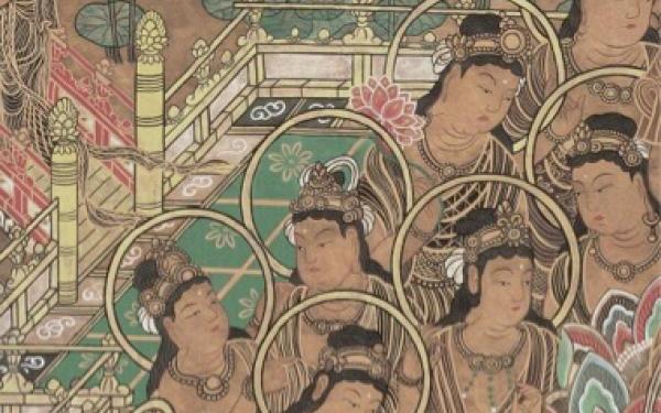 敦煌壁画包括敦煌莫高窟、西千佛洞、安西榆林窟共有石窟552 个,有历代壁画五万多平方米,是我国也是世界壁画最多的石窟群,内容非常丰富。 敦煌壁画是敦煌艺术的主要组成部分,规模巨大,技艺精湛。敦煌壁画的内容丰富多彩,它和别的宗教艺术一样,是描写神的形象、神的活动、神与神的关系、神与 人的关系以寄托人们善良的愿望,安抚人们心灵的艺术。因此,壁画的风格,具有与世俗绘画不同的特征。但是,任何艺术都源于现实生活,任何艺术都有它的民族 传统;因而它们的形式多出于共同的艺术语言和表现技巧,具有共同的