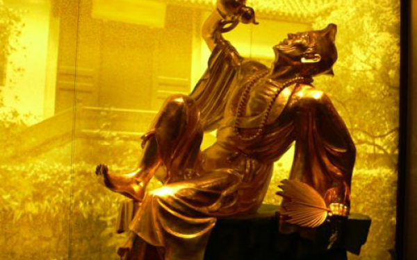 释济大师静静听他说完,微微一笑说:"施主何必心急,同老衲到院中捡一片净叶你就可知自己的未来了。"释济带年轻人走到禅寺中殿旁一条穿寺而过的小溪边,顺手从菩提树上摘下一枚菩提叶,又吩咐一个小和尚说;"去取一桶一瓢来。"小和尚很快就提来了一个木桶一个葫芦瓢交给了释济大师。大师手拈树