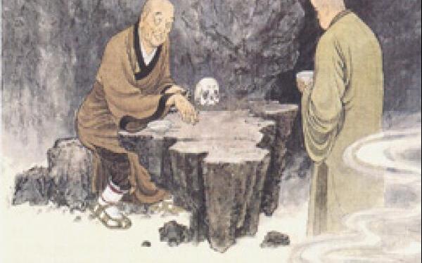第二天,文道醒来时,慧薰禅师早已起身,并已将粥煮好了。用餐时,洞中并没有多余的碗可给文道用餐,慧薰禅师就随手在洞外拿了一个骷髅头,盛粥给文道。文道踌躇得不知是否要接时,慧薰禅师说:"你无道心,非真正为法而来,你以净秽和憎爱的妄情处事接物,如何能得道呢?"