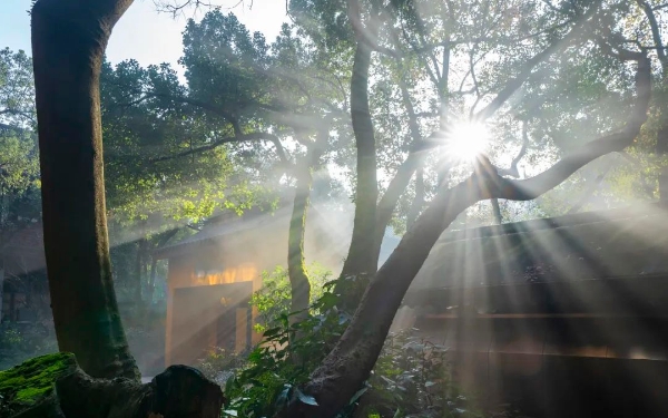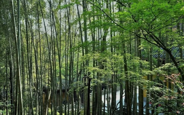 题破山寺后禅院【唐】常建清晨入古寺,初日照高林。曲径通幽处,禅房花木深。山光悦鸟性,潭影空人心。万籁此都寂,但余钟磬音。这是盛唐最为著名的一首题寺诗,前人评之“通体幽绝”(清沈德潜《唐诗别裁集》),“兴象深微,笔笔超妙,此为神来之候”(《唐宋诗举要》)。首联用工整的对仗,省净的笔法,破题而入,又借“清”“古”“高”三字,透露了诗人对清静高洁的古寺高林的倾慕;颔联为传世绝唱,由竹径见幽处,由幽处见花木和禅房,层层深入,这一踏径穿花至禅房的过程,与其中所引发出的“曲径通幽”的意趣,成为后世园林艺术与文学艺术的美学追求。由“曲”“幽”“深”而至别有洞天,这一洞天便是“悦”与“空”的禅境,便是令人惊叹