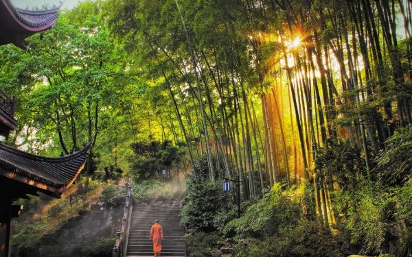 (七)慧远倡导的念佛禅慧远本姓贾氏,雁门楼烦(今山西代县)人,二十一岁,与弟慧持,共入道安之门,听讲《般若经》豁然而悟,便与弟慧持依道安出家。既入道,以大法为己任,精思讽持,以夜继昼。通无生实相之玄,般若中道之妙,即色空慧之秘,缘门寂观之要。博识玄览,戒定兼明。道安尝叹曰:“使道流东国,其在远乎。”后随安公南游樊沔。前秦建元九年(373),秦将苻丕,寇并襄阳。道安为朱序拘,不能得去。乃分张徒众,各随所之。临路,诸长德皆被诲约,远不蒙一言。远乃跪曰:“独无训勖,惧非人例。”安曰:“如汝者,岂复相忧。”(《高僧传慧远传》)远于是与弟子数十人去荆州等处,及入庐山,刺史桓伊为之建立东林寺,创白莲社,弘