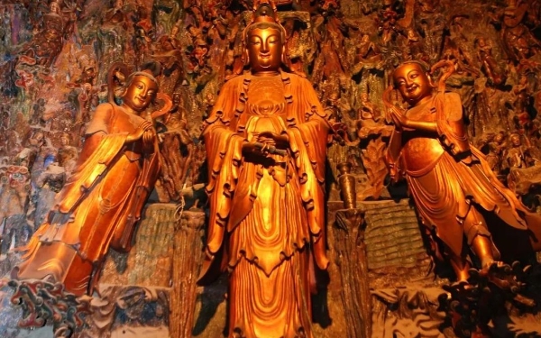 观世音菩萨与娑婆世界的众生有着甚深的因缘,因此几乎大家都知道有一位大菩萨名观世音,并且常常称念观世音菩萨的圣号。说起来,观世音是别号,特别指这一位大慈大悲的菩萨,菩萨是通号,除了观世音,比如我们熟悉的文殊、普贤、地藏等都是菩萨。菩萨的别号,观是以智观察,世是世间,具体有几类不同:欲界众生、色界众生、无色界众生,三界都为有漏世间;二乘罗汉为无漏世间;菩萨为二边世间;佛则为中道世间。音是音声,十法界世间有种种音声,恶音、善音、有漏音、无漏音、二边音、中道音,皆为所观之音。观是能观之智,世音即是所观之境,这就蕴含着观世音菩萨之所以能够有求必应的两个方面——众生之感和菩萨之应。如《观世音菩萨普门品》云