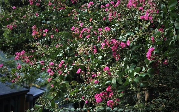 题草堂【元】溥光法师草堂名刹岁年深,三藏谈经事莫寻。唯有千章云木在,风来犹作海潮音。“草堂名刹岁年深”,遥想当年,号称七佛译经师的鸠摩罗什大师居住在草堂寺,广说经法度化众生。“三藏谈经事莫寻”,而如今到了元王朝,早已岁深月久,所以此番诗僧来到寺里观瞻,对于罗什谈经之事,已经无法追寻昔年的盛况了。“唯有千章云木在”,往昔隆盛的佛事已经远去,而寺庙中耸入云天的千章古木却依旧常青。所谓“惟有门前镜湖水,春风不改旧时波”。千章古木在阵阵风吹之下,“犹作海潮音”,依然发出佛门警世的海潮之音,演唱无上真谛。“天鼓无思,随人发响;海潮无念,要不失时。”无情亦是应机而说,不待请也。诗僧沉浸于古木发出的海潮梵音