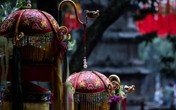 八月初七 章安灌顶大师圆寂日龙树教观 天台始昌有师结集 法波愈扬历难注经 雪被冰床烈火不爇 其纲永张灌顶大师(561—632),字法云,俗姓吴,临海章安人,祖籍常州宜兴,先世避地东瓯,因而不返,遂安籍临海之章安。师生于陈文帝天嘉二年(561),父早下世,母氏鞠养,生甫三月,能随母称三宝名。有僧过门,谓其母曰“此子非凡器也”,因取名为非凡。七岁,入摄静寺依僧慧拯出家,日记万言。陈宣帝太建十二年(580),年二十,受具足戒,天纵慧解,一闻不忘。陈后主至德元年(583),初至天台山修禅寺拜谒智者大师,禀受观法,研绎既久,顿蒙印可。因为智者侍者,随师进山,凡大师所说法门,灌顶悉能领解。陈祯明元年(58