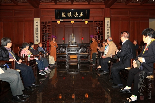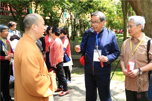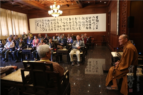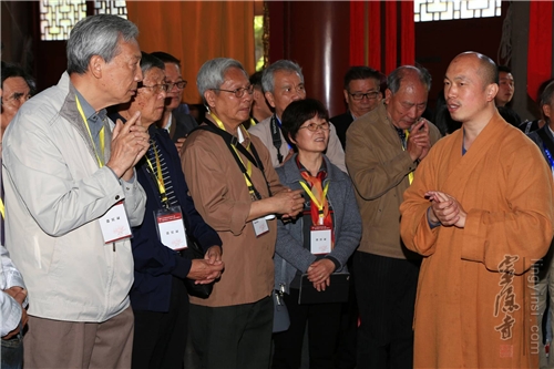 灵隐寺监院觉恒法师在莲灯阁接待浙大老校友一行人
