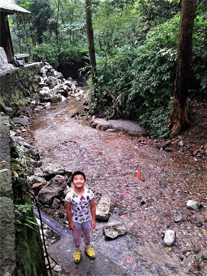 2015年3月14日 他带孩子在灵隐小溪边留影