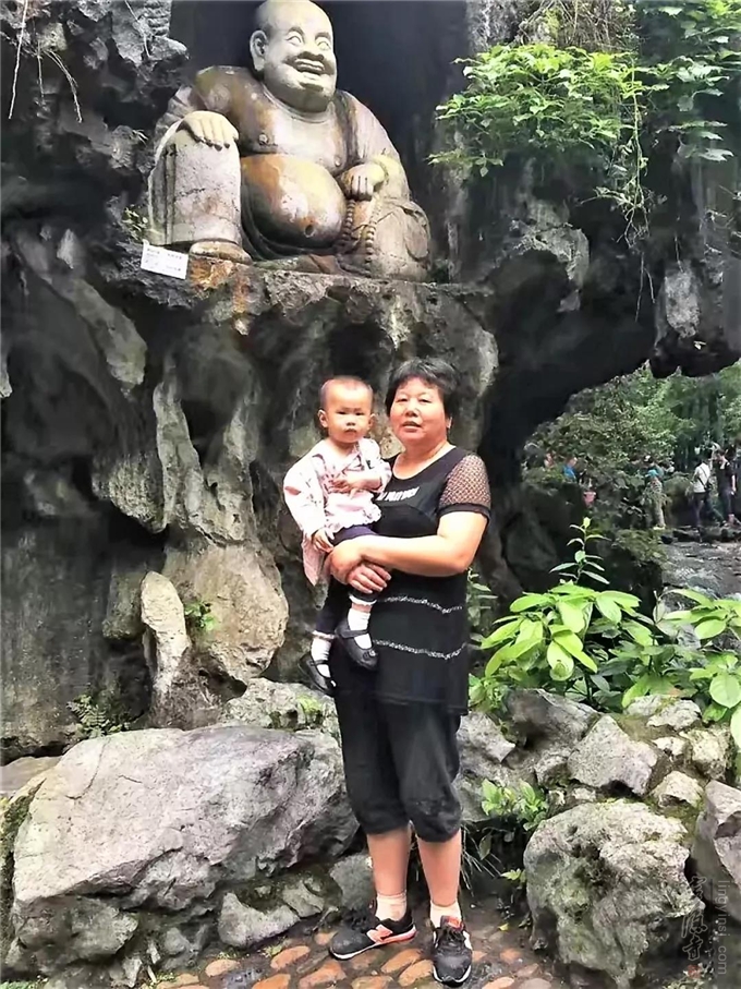 2016年 母亲抱着我孩子在灵隐飞来峰的留影