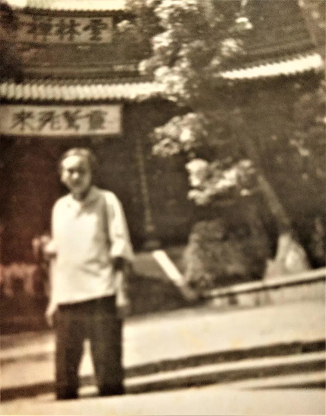 记得1975年夏末初秋,我在余杭教书,母亲从金华老家坐了四个小时的绿皮火车来看我。笫二天是一个阳光灿烂的星期天,我陪母亲去灵隐寺上香礼佛。在灵隐天王殿前,用照相机为母亲摄下这张照片。由于拍摄技术欠佳,照片的角度没有摆好,但母亲看了照片仍然很开心。