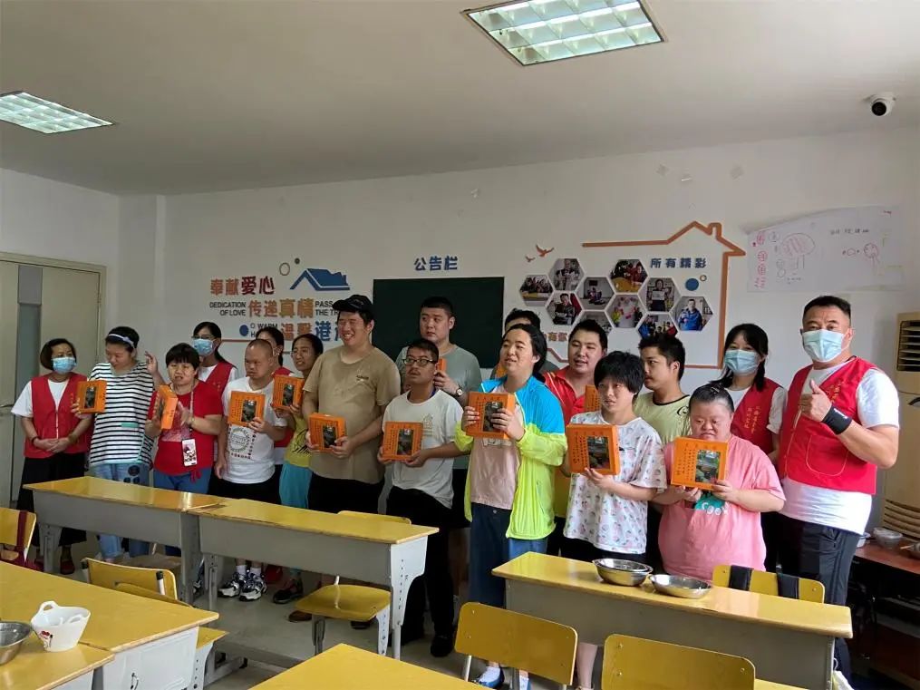 拱墅区残联阳光家园里有一群正在学习工作技能的朋友,爱心志愿者将月饼送到他们手中,祝愿他们学业进步,天天快乐无忧,时时幸福相伴。