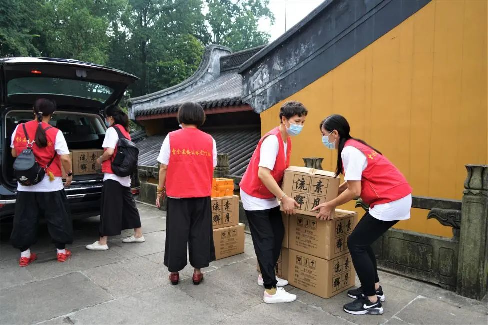 上午九时,志愿者们首先来到位于天竺路上的上天竺安养堂,为这里的师父们奉上灵隐寺的净素月饼,祝福他们法体康安,六时吉祥。