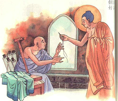 佛陀对释种出家的人,要求特别严格。一次佛说法,阿那律打起瞌睡,佛陀批评他说:‘咄咄汝好睡,螺蛳蚌蛤类,一睡一千年,不闻佛名字’。阿那律听到佛的批评,跪下来求忏悔说:‘从今后,尽形寿,不再睡眠。’没有多久,阿那律因不睡眠,患了眼病。佛知道后,关心地劝慰他说:修行不食固然不行,太过了也是不行。一切众生都要有食物才能生存,耳以声为食,鼻以香为食,舌以味为食,眼以睡眠为食。修道也是这样,涅槃以不放逸为食,无为境界以禅悦法喜为食。你应睡眠,保护眼睛。并请名医耆婆为他医疗。阿那律倔强地回答说:我发了誓,尽形寿,不再睡眠,依然不肯睡眠,不久,他的眼睛终于瞎了。在僧团内规定:比丘乞食回来,要将一份留给病比丘食用,衣服破了、脏了同住的比丘要予以补洗。后来阿那律的三衣破得实在不能再穿了,要求阿难为他缝制一套新的三衣。佛陀知道此事,亲自为阿那律制衣,而且剪裁和缝制的水平很高,深为舍利弗、目犍连、阿难等人所敬佩。从这一事件中,可以看出佛在僧团中,从不高人一等,与弟子的关系是慈爱和平等相处。